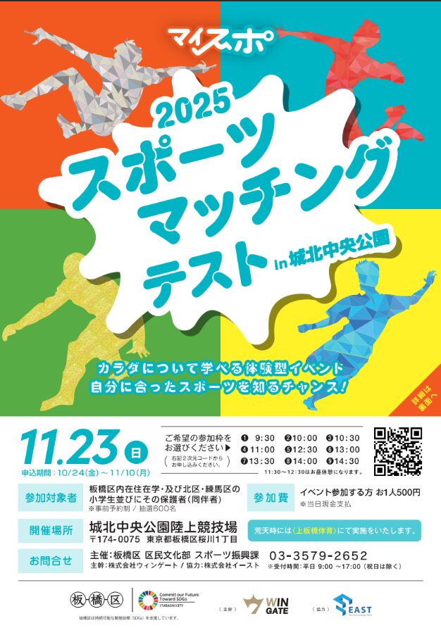 板橋区で3年目となるスポーツマッチングテストを都立城北中央公園にて開催致しました。