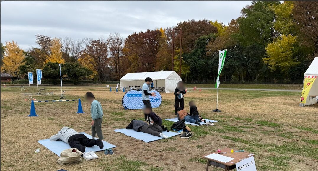 本イベントではさらに、体力測定を実施後に体験ブースを設け、実際に親子でストレッチや運動遊び教室を体験することで運動への興味関心を高める取り組みを行っております。