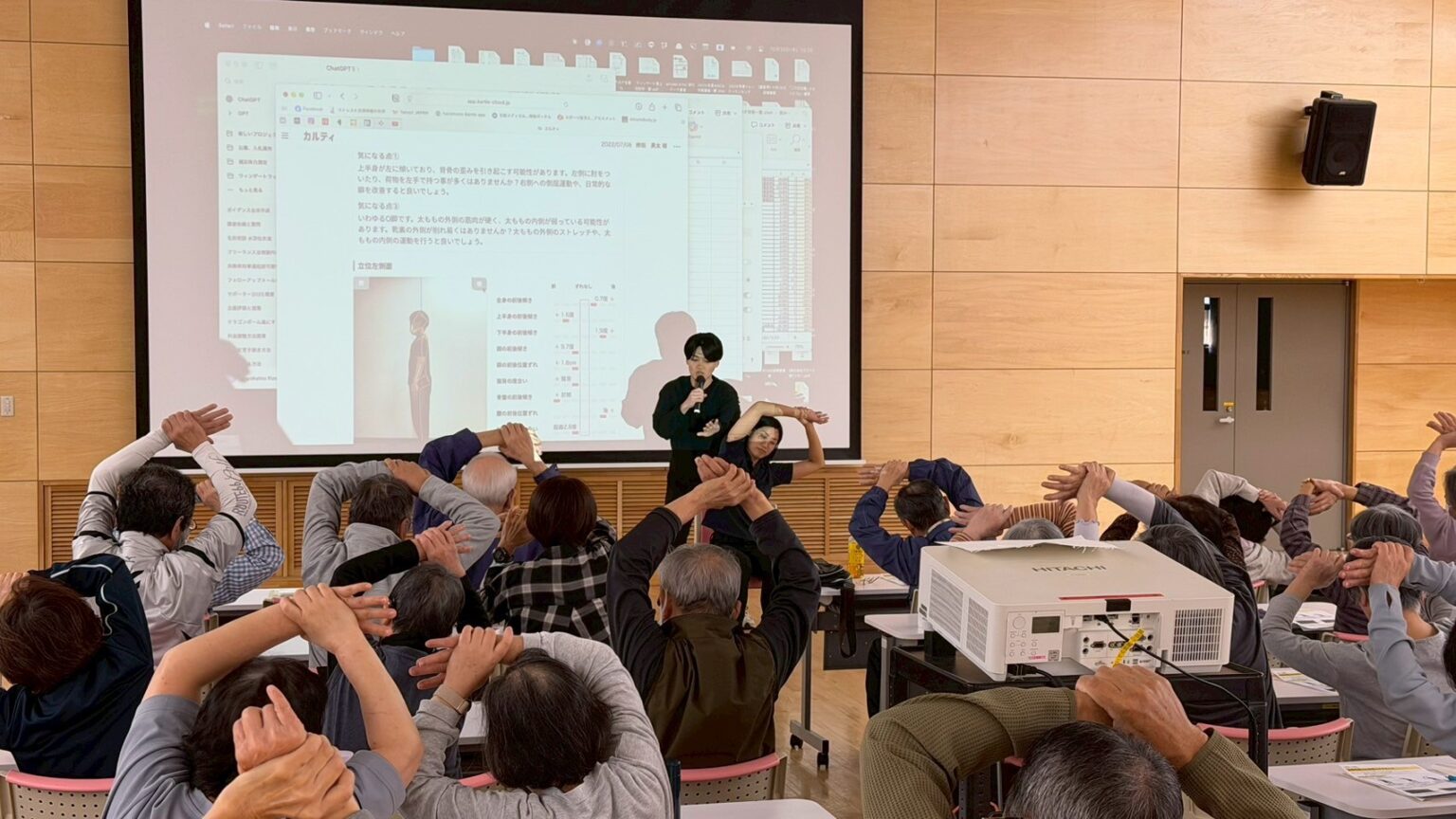 説明を始めると、参加者のみなさんが自然と同じ動きを練習して下さり、一人ひとりの健康意識の高さが伺えます!