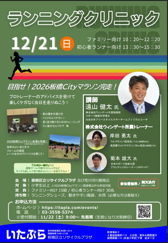 板橋区立リサイクルプラザ様からのご依頼で、板橋Cityマラソンに向けたランニングクリニックを実施致しました。