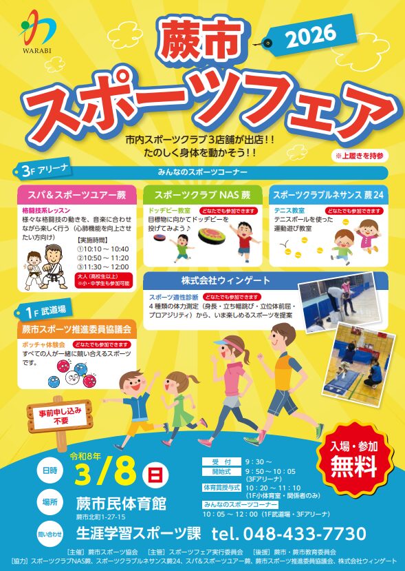 埼玉県・蕨市で開催されました、蕨市スポーツフェア2026にてスポーツ適性診断を実施しました。