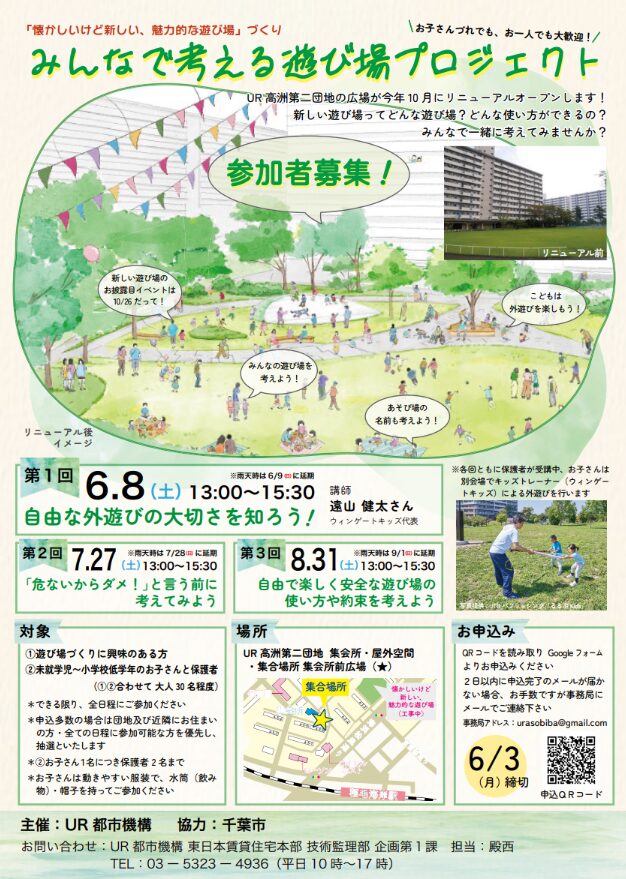 高洲第二団地でで開催されたにて、「みんなで考える遊び場プロジェクト」にて、弊社代表・遠山健太による講演会とキッズトレーナーによる運動遊びを3 回にわたって実施致しました。